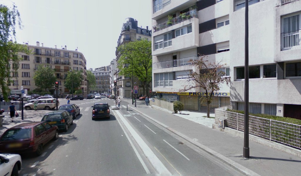 (Photos 10 & 11) Les scènes suivantes, à environ 41 minutes où Marguerite Martin (Denise Grey) qui tente d’apprendre à conduire au volant de la camionnette de Duchemin (Edmond Ardisson) poursuit le vendeur d’orange, lequel sera percuté quelques instants plus tard par le corbillard d’Auguste (Jacques Fabbri) conduit par Léon Martin (Noël-Noël), ont été tournées le long de l’avenue Reille jusqu’au carrefour de la rue Saint-Yves à Paris 14ème, face au Parc Montsouris. On distingue bien à gauche le « réservoir de Montsouris» construit dans les années 1870.