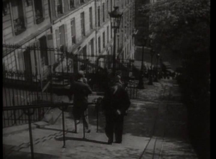 On voit le facteur Maurice Martin remonter la rue Paul Albert 75018 PARIS: Puis magie du cinéma, il se retrouve rue Jules Jouy, Le café se trouvait à l'angle . de nos jours: Depuis l'intérieur du café, on reconnait des maisons qui n'ont pas changées de nos jours: Le lieu ou discutent Maurice Martin et son ami est la rue de Caulaincourt 75018 PARIS