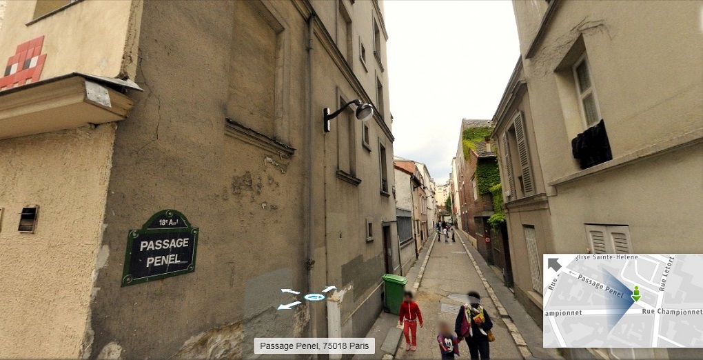 Si je vous ai bien compris, vous acceptez que dans la fenêtre du café, vous pouvez voir les contours de la maison (ou son image miroir) sur rue Gustave Rouanet. Dans la capture d'écran, j'ai sélectionné un carré. Il me semble que lorsque nous trouvons ce point, nous pouvons avancer.