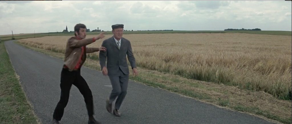 Je cherche aussi la maison à colombage qui est presque certainement dans la même scène, le village avec le château d'eau et l'église (presque unique en France :D) ainsi que la grange que l'on voit derrière les gendarmes à moto. Il est presque certain que ces deux derniers lieux sont également proches l'un de l'autre.