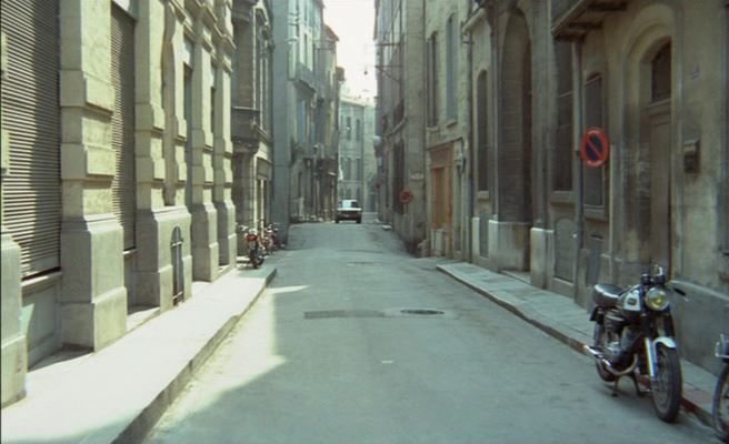 4) à 14min47sec et 36min55sec, scènes dans la rue perpendiculaire à l'entrée de l'hôtel, là où Milan (Lino VENTURA) a garé sa voiture en toute discrétion: