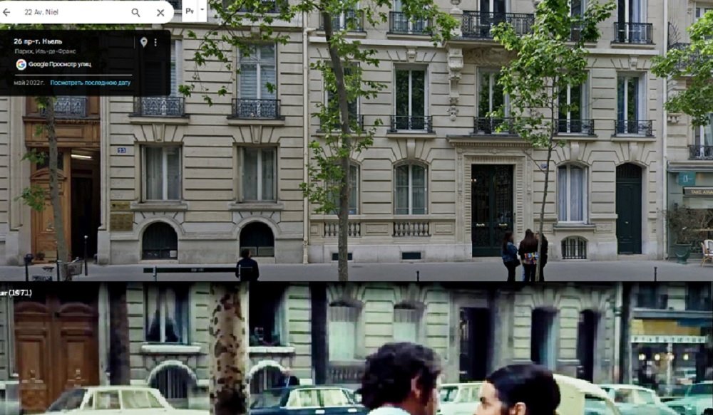 J’ai un gros doute dans le film le magasin est avancé sur le trottoir si tu regardes bien on voit un décrochement la magasin n’est pas en ligne par rapport à l’immeuble à gauche