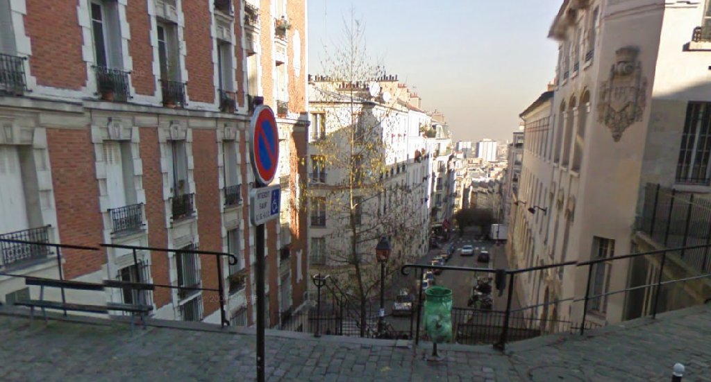 Là c'est en haut des escaliers de la rue du Mont-Cenis au carrefour de la rue Saint Vincent: Là c'est depuis le Carrefour avec la rue Saint Vincent vers le bas des escaliers de la rue du Mont Cenis: