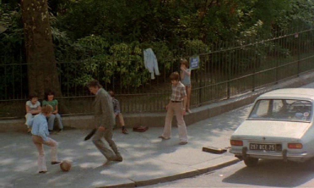 On voit Antoine Chapelot (Robert Lamoureux) jouer avec des enfants(1') devant le square Trousseau