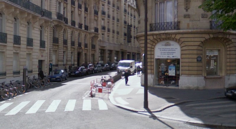 à l'angle de la rue Bertie Albrecht et de l'avenue Hoche à Paris dans le VIIIe, ce n'est pas évident à voir car il n'y a pas de plans larges ce cet endroit