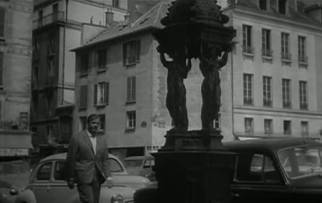 Pierre Wesselrin (Jess Hahn) boit à la fontaine Wallace qui se trouve au N° 7 de la place (58')