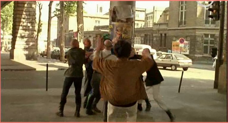 2= la bagarre sous un metro aerien entres plusieurs personnes dont brialy(en femme) et anconina et boujenah lui donne la main
