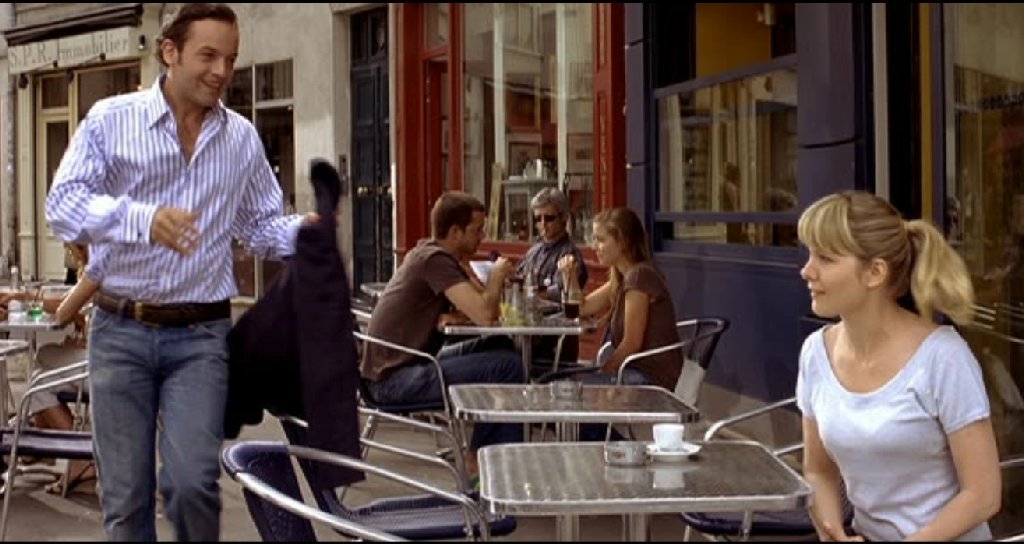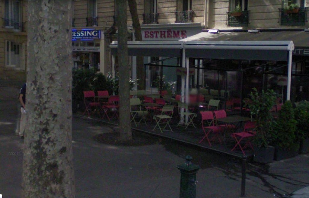4)le bar vers la librairie ou sont a une terrasse de cafe pascal et la collegue de librairie d'emilie