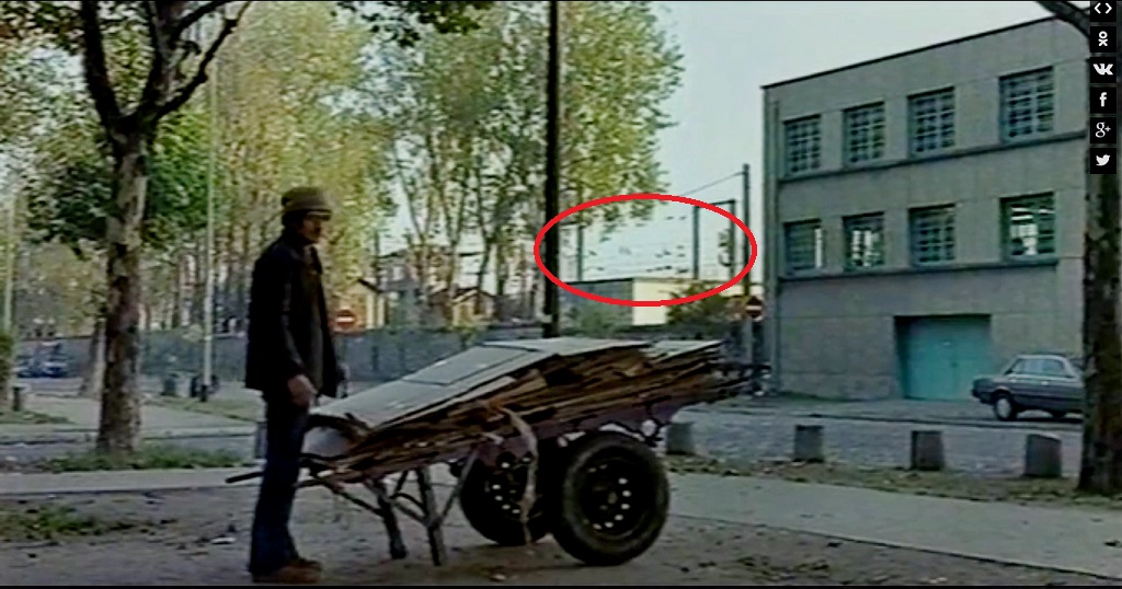 il est difficile de dire de quel type de construction il s'agit à gauche. La capture d'écran est en basse résolution, mais la maison de droite ne fait définitivement pas partie de la sous-station électrique. Barres aux fenêtres à tous les étages.