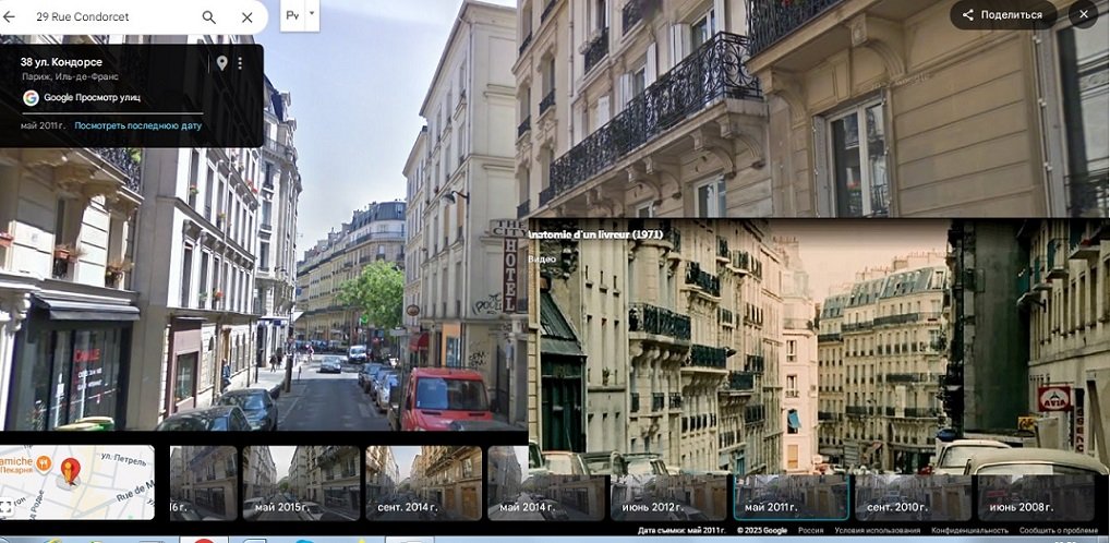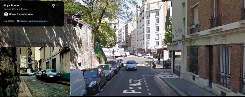 J’ai un gros doute dans le film le magasin est avancé sur le trottoir si tu regardes bien on voit un décrochement la magasin n’est pas en ligne par rapport à l’immeuble à gauche