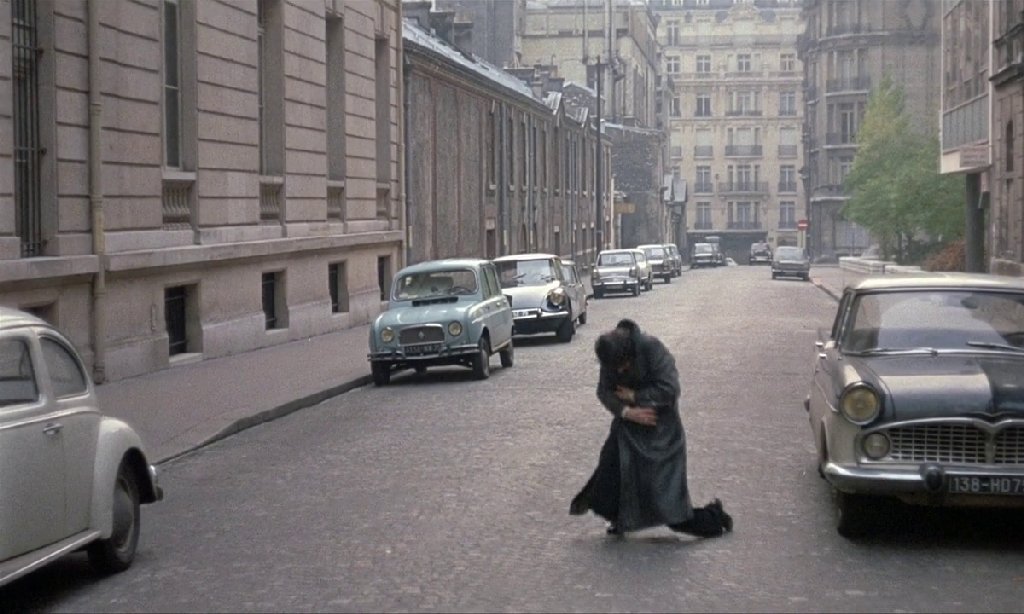 Séverine Serisy (Catherine Deneuve) se dirigeant vers le square: même endroit de nos jours: La rue ou se font déposer en taxi, Séverine Serisy (Catherine Deneuve) et son amie Renée (Macha Meryl)