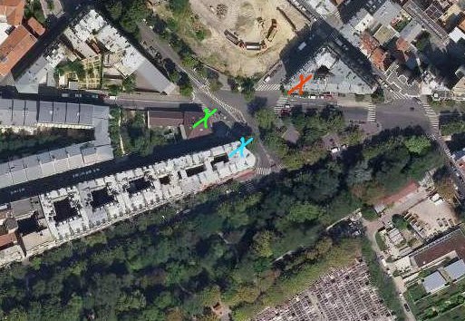map) et celui de la fille dans l'immeuble en angle sur trois rue( av Gambetta, place Nadaud et rue Robineau) (croix bleu sur map).