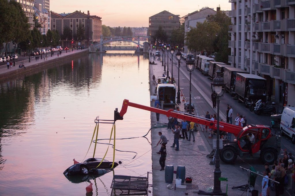 Par exemple ici, photo du tournage sur le Canal de l'Ourq, quai de l'Oise dans XIXe: