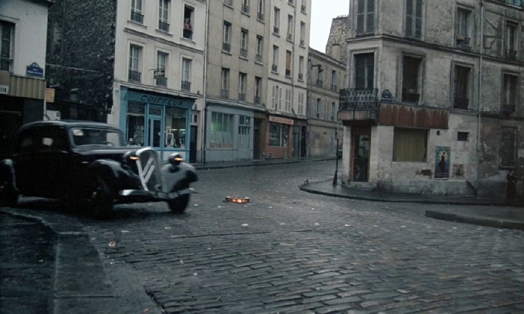 Sur l'info envoyée hier 46 Rue des Panoyaux, l'immeuble vétuste encore gardée par Suzanne Flon (qui dans le film est censé être au 32 rue des Abbesses) a bien entendu disparu emporté dans le programme de rénovation qui à l'époque frappait d'alignement des centaines d'habitations à Belleville; ce qui m'a permis de le situer avec précision c'est l'immeuble juste en face (n°45) qui lui est toujours debout et sur la façade duquel on retrouve en même place des détails architecturaux entr'aperçus dans le film (douze lignes de refends qui entourent les fenêtres au rez-de-chaussée, présence d'un tuyau de descente d'eau pluviale, disposition générale et aspect des fenêtres dans les étages supérieurs sans oublier le dessin de l'appui de fenêtre du rez-de-chaussée au tournant de la Rue Delaitre devant lequel se tient Delon quand il assiste au départ du fourgon de police qui emmène Klein).