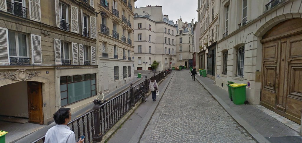 Cette rue, en pente, présente la particularité d'avoir une partie de sa chaussée sur deux niveaux différents avec un escalier au bas de la rue permettant accéder de l'un à l'autre. Schauspieler