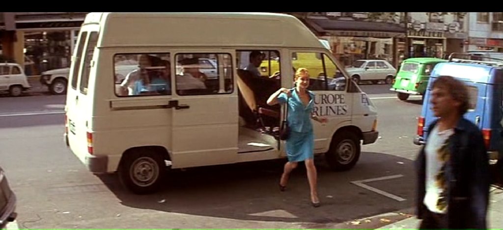 Isabelle Parisse (Valérie Mairesse) se rend au bureau de son fiancé (Coluche). Elle descend d'un fourgon garé devant le 46 avenue des Ternes PARIS