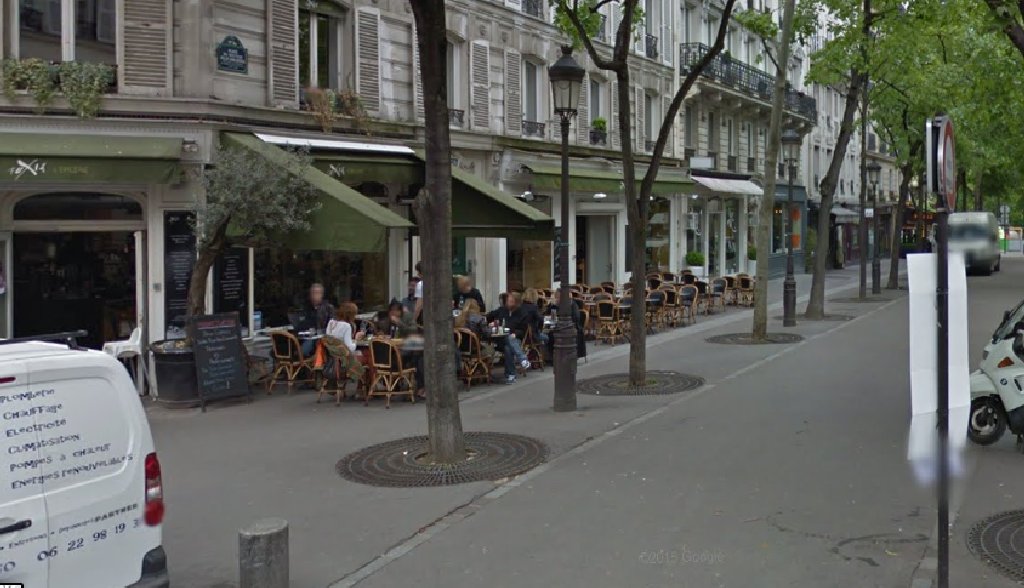 4)le bar vers la librairie ou sont a une terrasse de cafe pascal et la collegue de librairie d'emilie