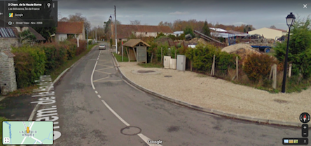 Je suis allé prendre une photo du chemin de la Haute Borne à la Croix Rouge, là où la malle tombe. On reconnait assez bien les deux bâtiments de chaque côté de la route, même s'ils ont été bien modifiés depuis.