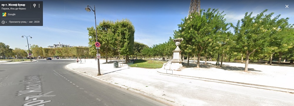 Regardez les arbres, ils ont la forme d'une pyramide. Les arbres de cette forme sont plus fréquents dans les lieux célèbres de Paris. Et pourtant, j'ai supposé qu'il y avait un mouvement circulaire devant la voiture. Par conséquent, j'ai combiné ces deux conseils, ce qui m'a aidé à trouver cet endroit. Bonne journée.