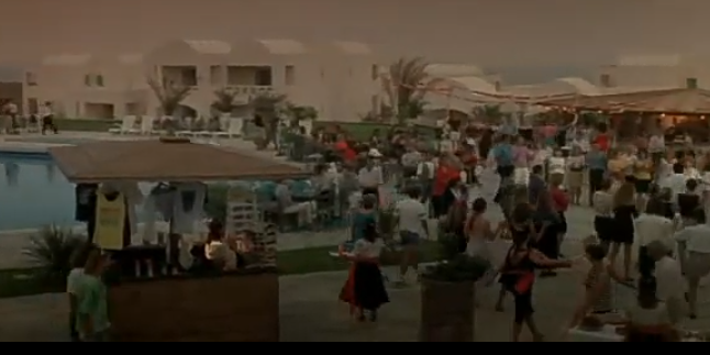 Pour ce qui est de la Grèce, la courte séquence a sans doute été tournée dans un des nombreux hôtels ou résidences , comme il en a poussé des centaines, par exemple dans les Cyclades : c'est mon hypothèse, mais sans plus de précision
