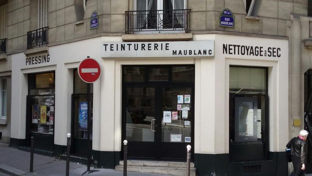 je desire connaitre le lieu ou sandrine kiberlain et sa fille dit au revoir a sa soeur accompagne de son copain et suit l'arrivee de pascal elbe vers un fleuriste et derriere on apercoit un magasin nettoyage a sec teinturerie