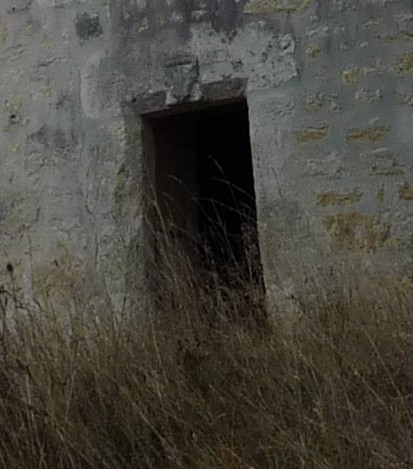...ce serait peut-être le moulin de Lartigue, situé en haut d'un butte il a été entièrement restauré et transformé en pigeonnier. A l'origine il avait deux portes au sud et au nord sous les ailes. La porte sud a été murée, au dessus de la porte nord, il y a un sorte d'écusson (serait-ce la tache sombre au dessus de la porte sur la photo du film ???).