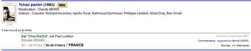 La voici: En réalité, cette scène du bar de Rachid (Mahmoud Zemmouri) a été tournée à PARIS dans le XIe