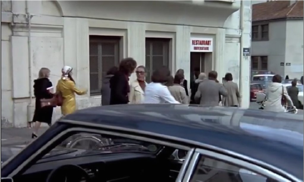 A un moment, au bout d’environ 1 heure, Bébel va chercher Jackie Bisset qui sort de la fac pour l’inviter à déjeuner, je me demande de quel endroit il s’agit.