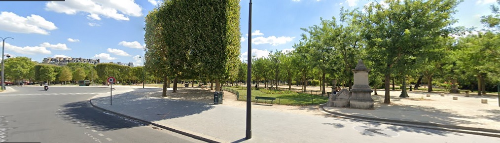 Il y en partout de la verdure dans ces coins-là... Je reste fasciné par la tour (cheminée) qui s’élève au dessus des toits, à la verticale de la 205 arrêtée sur cette place, ainsi que les deux trucs qui se font face devant la 205 arrêtée...Je me suis baladé virtuellement dans le 16eme et le 7eme, mais rien de rien