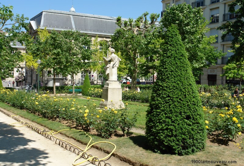 J'arrive après la bataille, mais le puzzle s'assemble parfaitement ; Ce square est bien le même que celui retrouvé par Schauspieler, "Adolphe et Jean Cherioux". Nous avons bien une statue planquée derrière un arbre et un arrière-plan