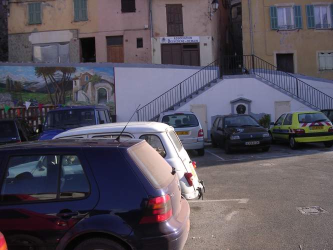 Entrée de l'église de Belvédère, à droite du clocher Vue sur la droite : on retrouve la montagne et la maison au fond Cruchot apprend sa mutation pour Saint-Tropez... Depuis la gare routière de Nice, la ligne n°730 de car Nice-Saint-Martin-Vésubie permet d'y aller sans voiture,
