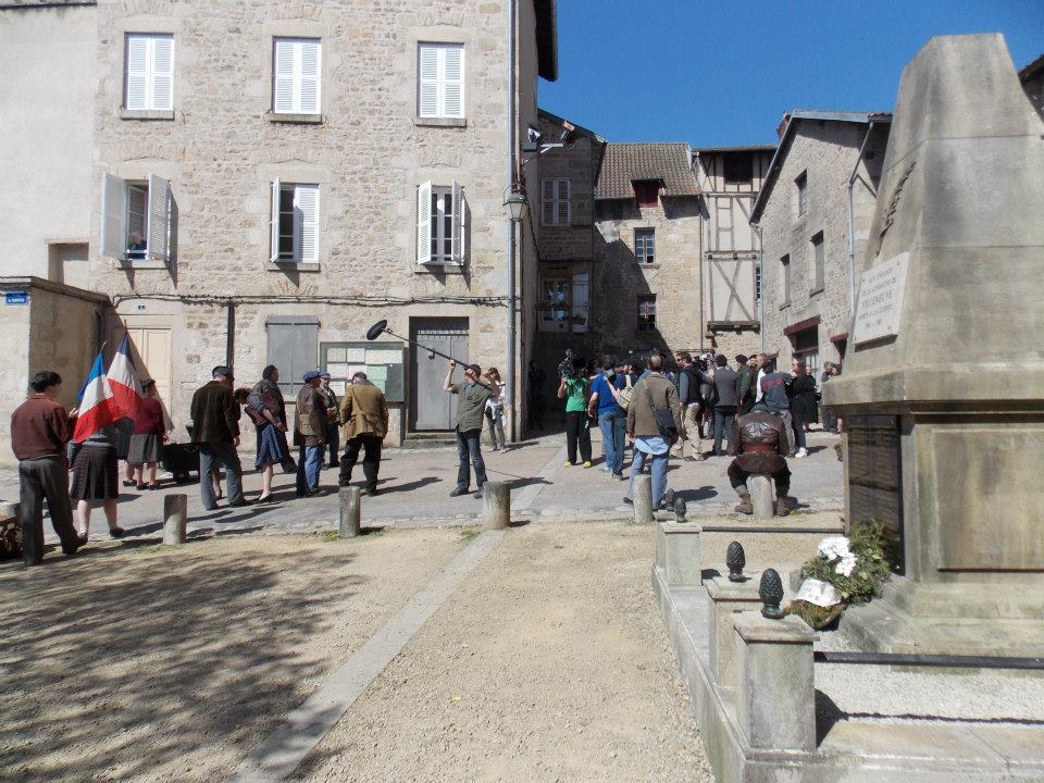 Photo du film : Eymoutiers: Photo du film: Le monument factice crée devant l'église: et pour finir quelques autres photos du tournage devant l'église d'Eymoutiers: