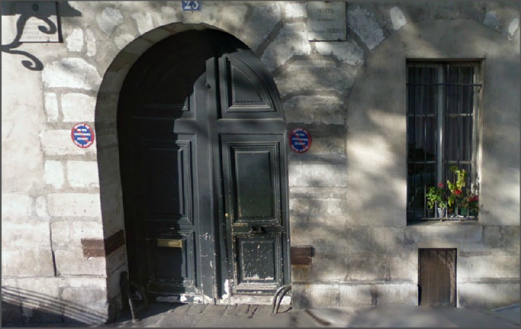 9 rue Poulletier : 23 quai d'anjou (la photo datant de 2008 le portail a été repeint avant le sketch de Foresti...)