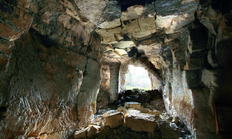 Une carrière ou une grotte et une sorte de tunnel.
